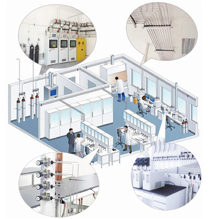 Wofly Technology provides a gas pipeline gas supply system used in a full range of laboratory industries to meet the requirements and safety of different experimental instruments.