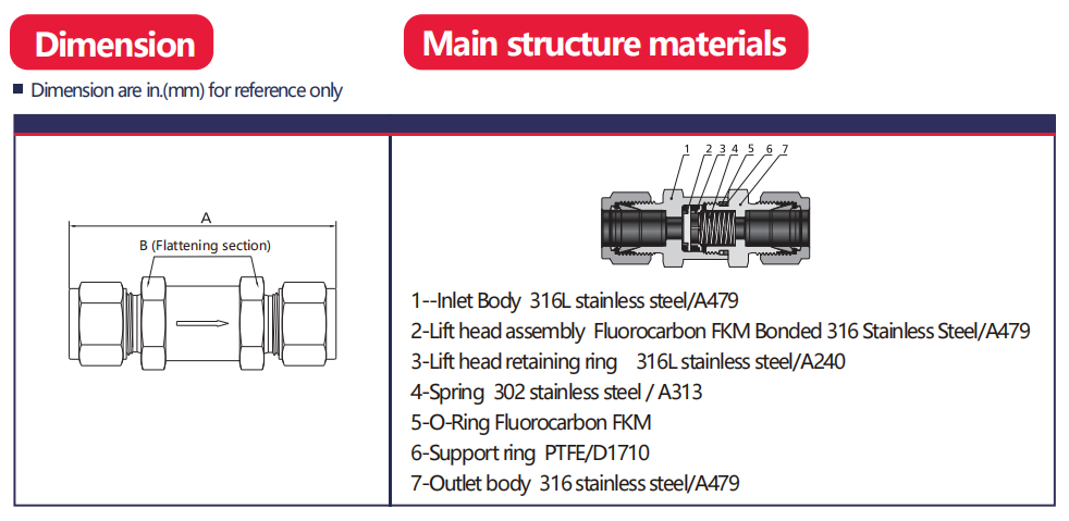 Before leaving the factory, specific opening pressures (cracking pressures) are preset according to different application scenarios. Common preset ranges include 1/3 psi, 1 psi, 3 psi, and 10 psi, which can flexibly adapt to gas transmission scenarios with different pressure requirements.