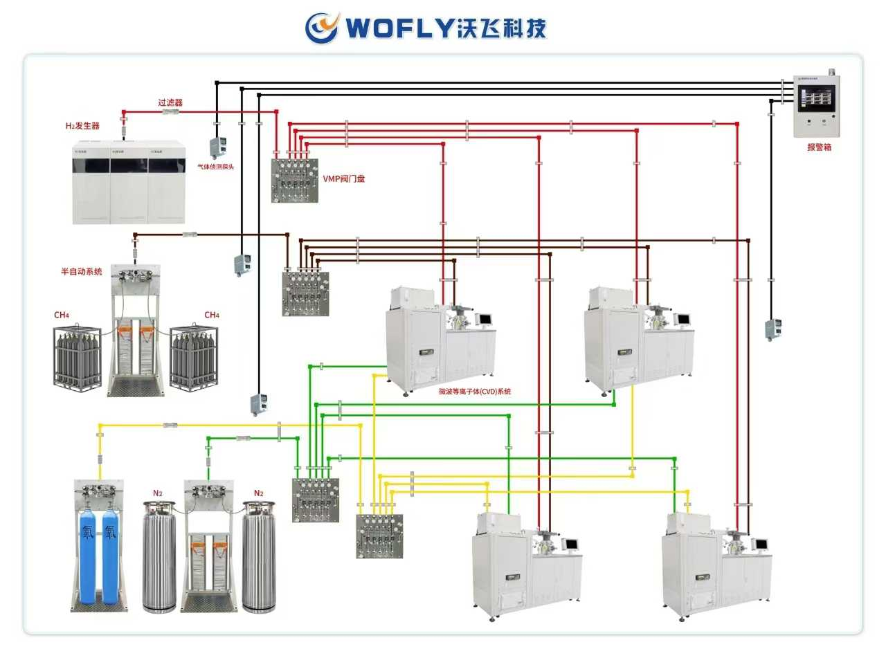 Special gases are delivered through gas cylinder cabinets (GC) or gas cylinder racks (GR) or bulk special gas supply systems (BSGS\R) via stainless steel pipes or stainless steel double pipes (SS316L EP or SS316L EP+SS316L BA) to special gas distribution boxes or panels—VMB/VMP. The above delivery process is part of the main special gas system supply; VMB/P is delivered to the final supply equipment through stainless steel pipes or stainless steel double pipes (SS316L EP or SS316L EP+SS316L BA), which belongs to the secondary special gas distribution supply.